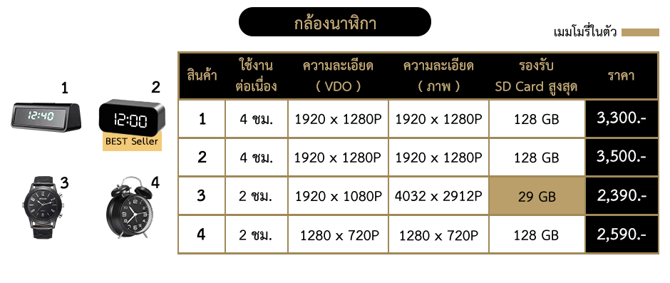 กล้องนาฬิกา มีอินฟาเรดสามารถถ่ายได้ในที่มืด